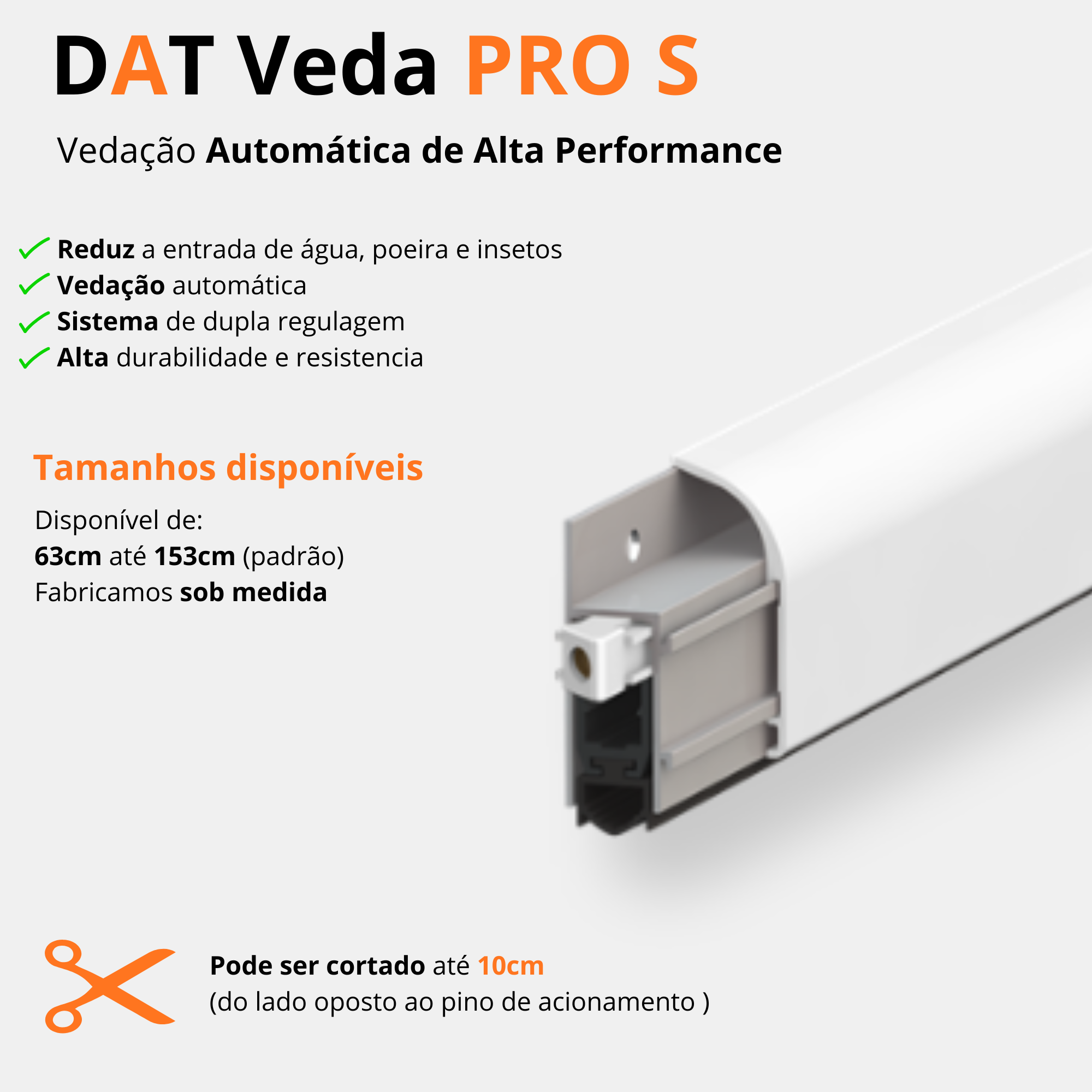 O Veda Porta Automático SOBREPOR é um equipamento de vedação SOBREPOSTO NAcom acionamento automático ao na porta. Pode ser instalado em portas de madeira, metal, ACM e PVC (dobradiças ou pivotantes) para proteção acústica, térmica e evitar a entrada de insetos, sujeira, odores, entre outros.